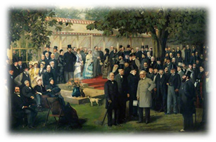 Lo más llamativo es que el cuadro representa un aperitivo de jardín organizado con motivo del Congreso Médico Internacional de Highgate de 1881, al que asistirían varios de los médicos que colaboraron en la identificación del bacilo de la tuberculosis.