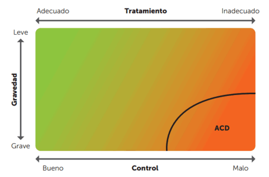 Figura 1: Relación entre gravedad y Control Asma. Fuente: GEMA 5.2 Según el grado de control, se clasifica en: bien controlada, parcialmente controlada y mal controlada